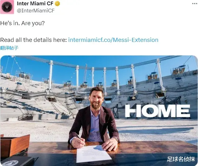 官方:迈阿密国际宣布和梅西续约到了2028年(至当赛季MLS结束,即12月),新的3年合同。